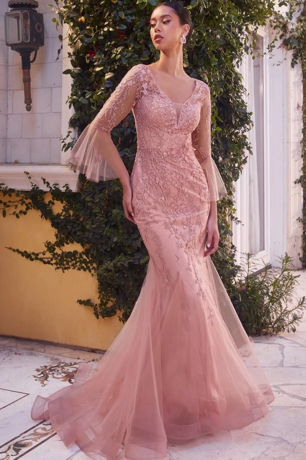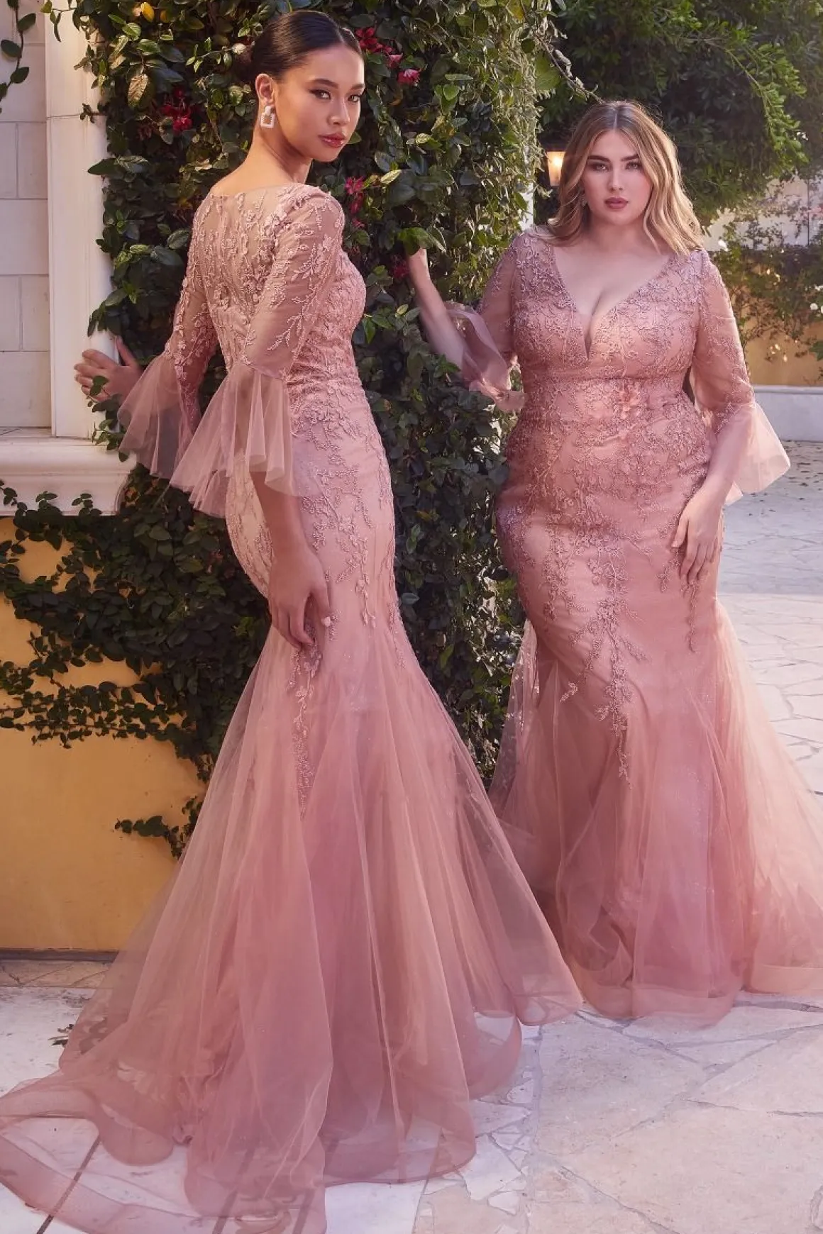 • Andrea & Leo A1342 • Tætsiddende gallakjole • Trumpetærmer • Kjolen er foret, så den kan bruges uden bh • Farve: Rosa og støvet blå • Størrelse: 8-22 StørrelsesguideMål dig rundt om barmen hvor du fylder mest og vælg din størrelse ud fra det mål. Bemærk taljemålet er mere tolerant og behøver ikke matche helt nø