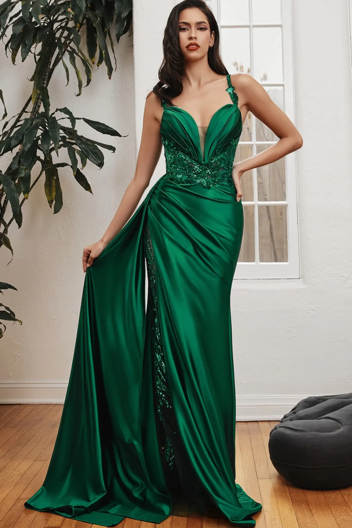 Elegant satinkjole med see through cut i siden og et flot slæb