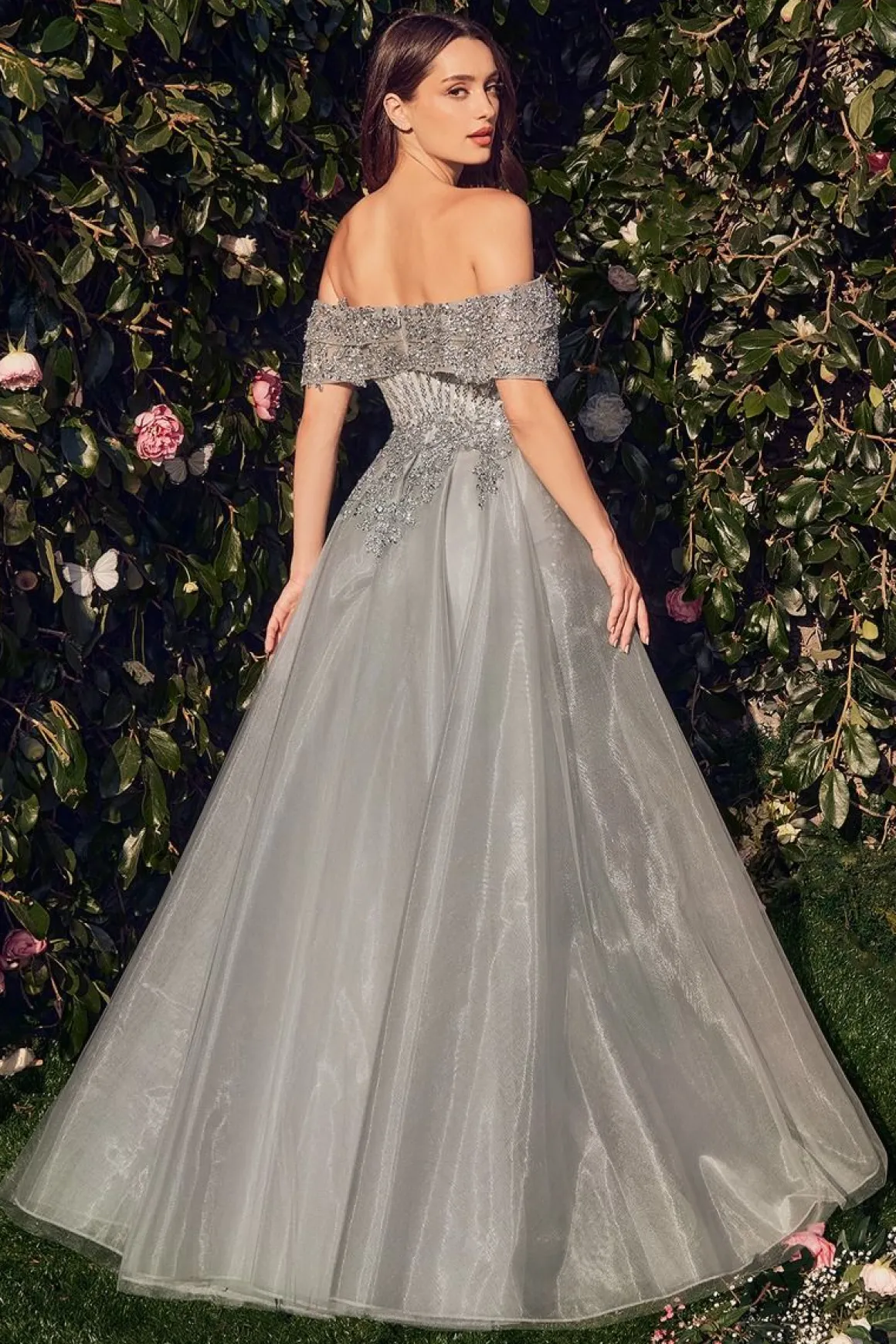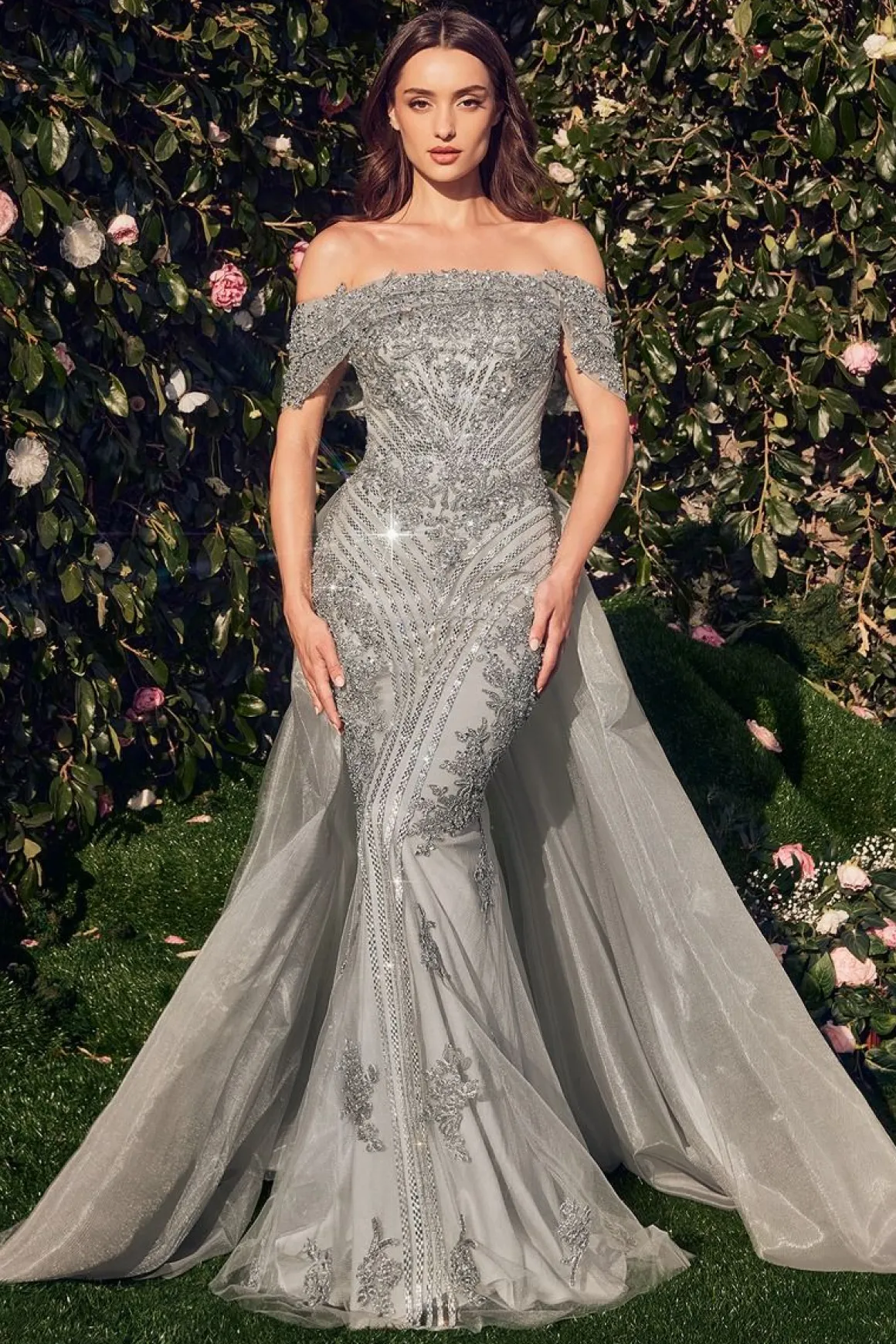Super elegant offshoulder gallakjole med masser af sten og fine detaljer.