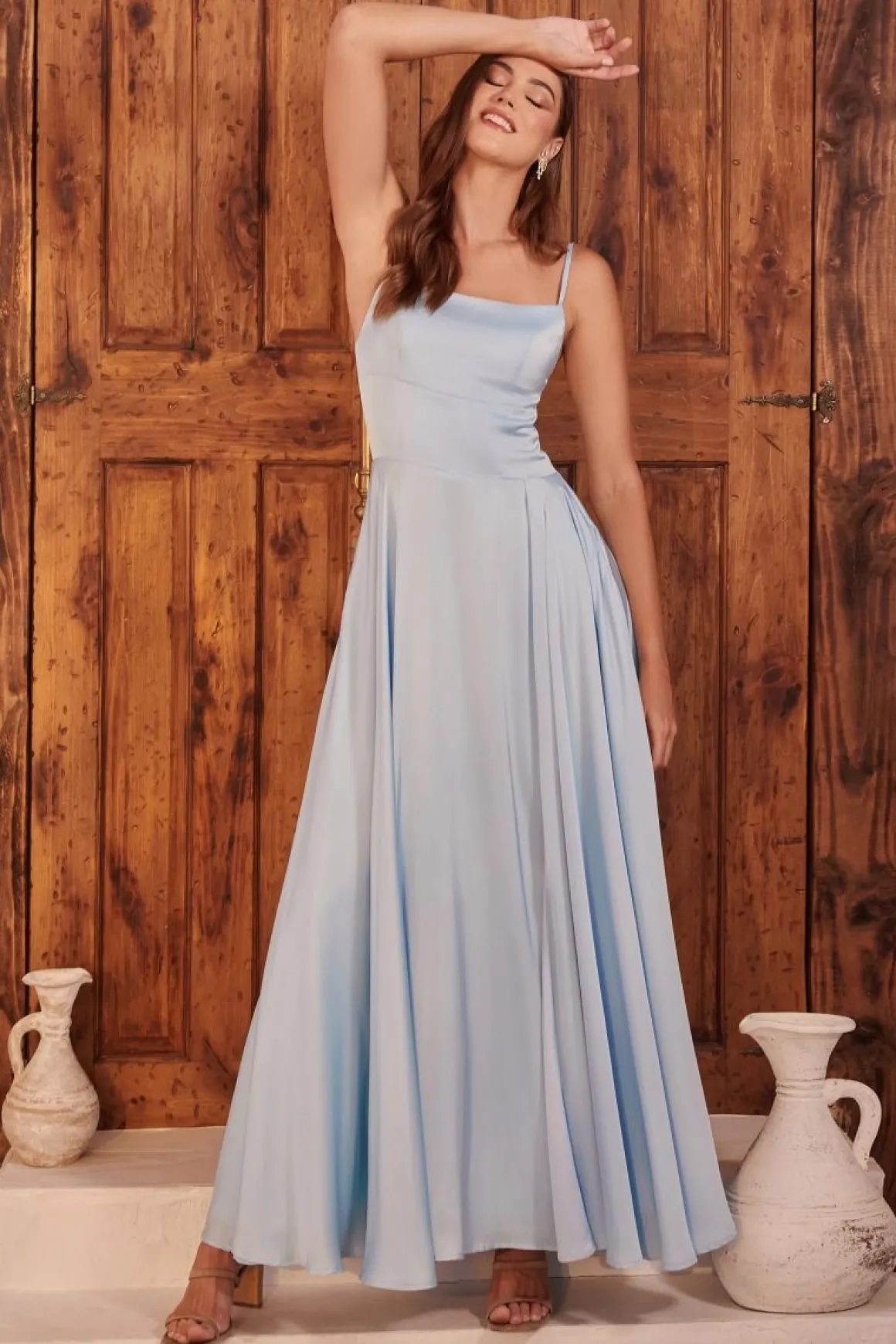 • La Divine B8402 • Satin festkjole med snørrer på ryggem • Satin • Størrelse : xs-xxl Satin festkjole som ikke er helt så lang som mage af de andre modeller vi har. Flere str er ved at være udsolgte i denne model, kontakt os gerne inden bestilling for at høre om den du ønsker er tilgængelig ( ikke ensbetydende med d