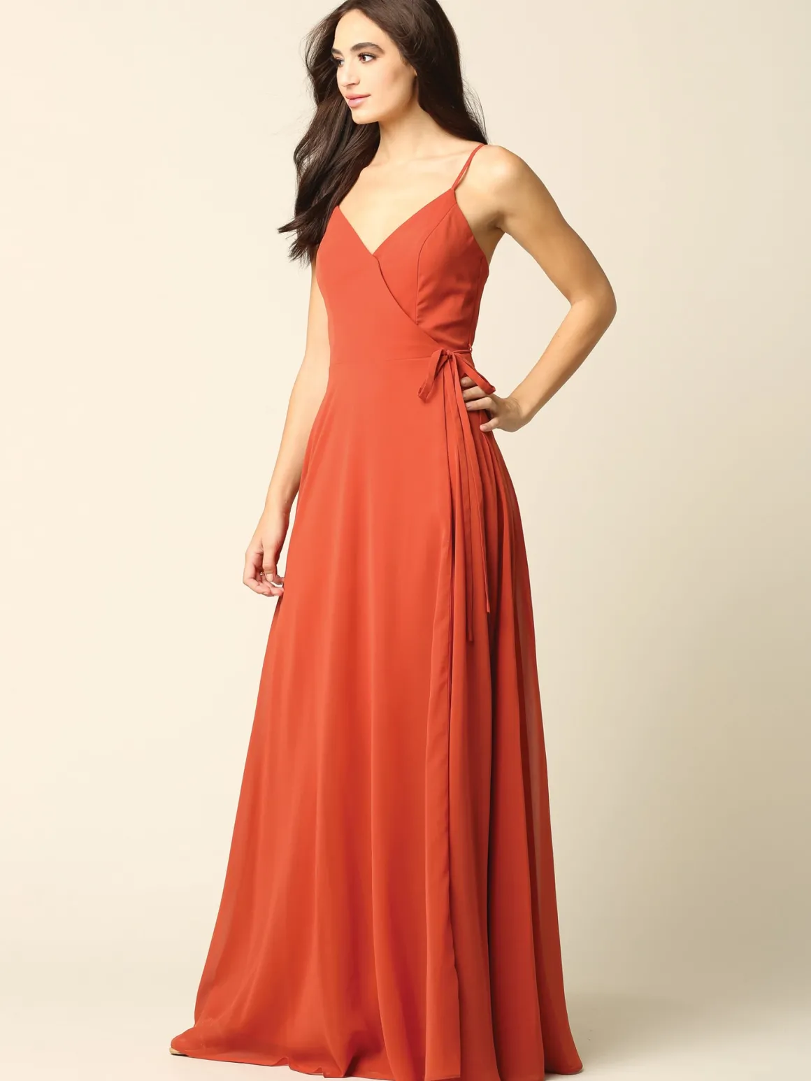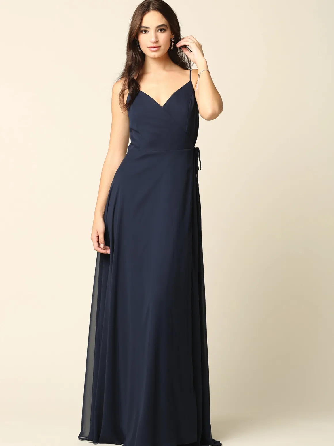 Eva 3382 er en fin lang og enkel chiffonkjole med let v-udskæring og tynde stropper. Kjolen er perfekt til både gallakjole eller som brudepigekjole.