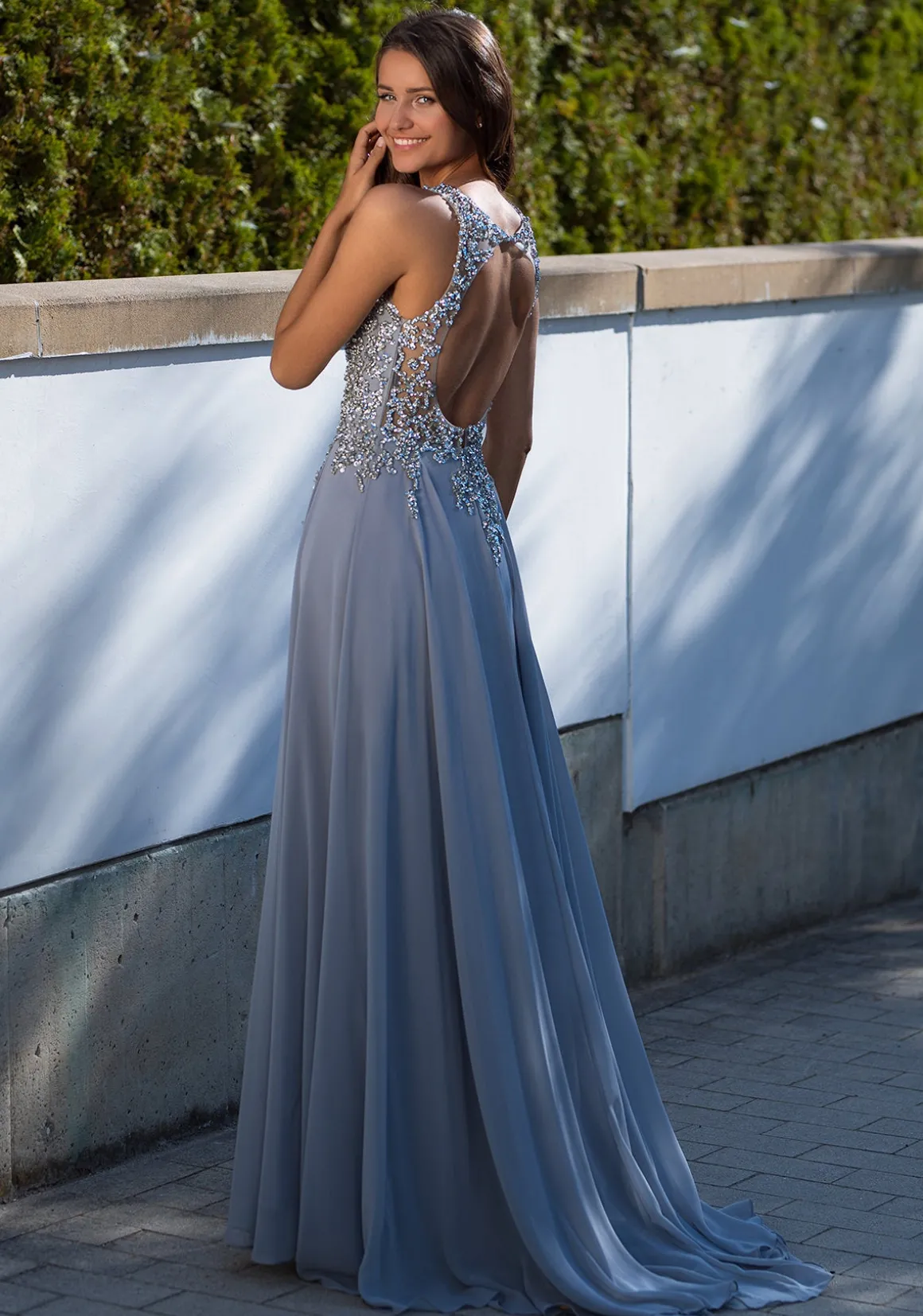 Lys grå Christian Koehlert gallakjole med åben ryg 0036