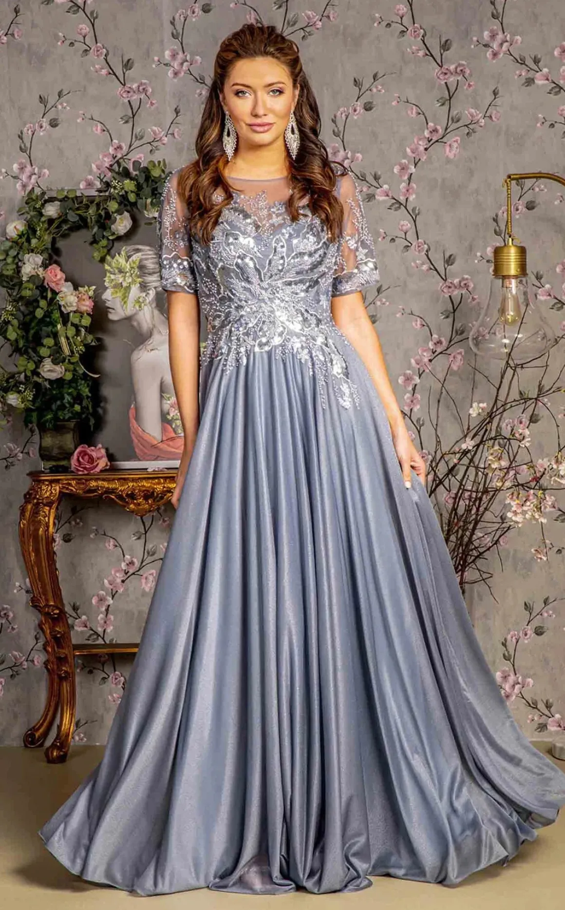 • Selskabskjole 3444 • Lang festkjole med et lille kort ærme • Smukkeste detaljer et let shimmer effekt i skørtet • Farve : Silver • Størrelse S-4X Målene er bryst og taljemål Mål dig rundt om barmen hvor du fylder mest og vælg din str. ud fra det mål Taljen måler du rundt om ved navlen Det vigtigste mål er brystmå