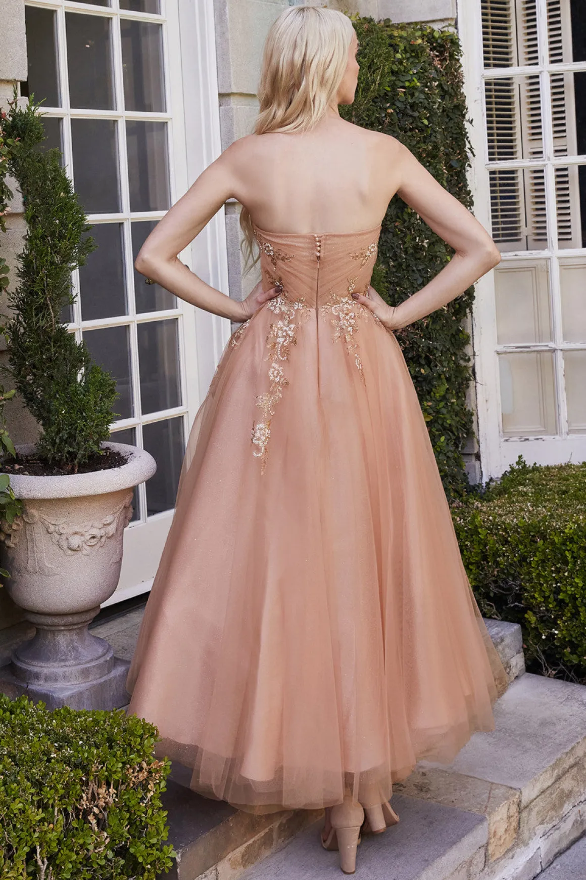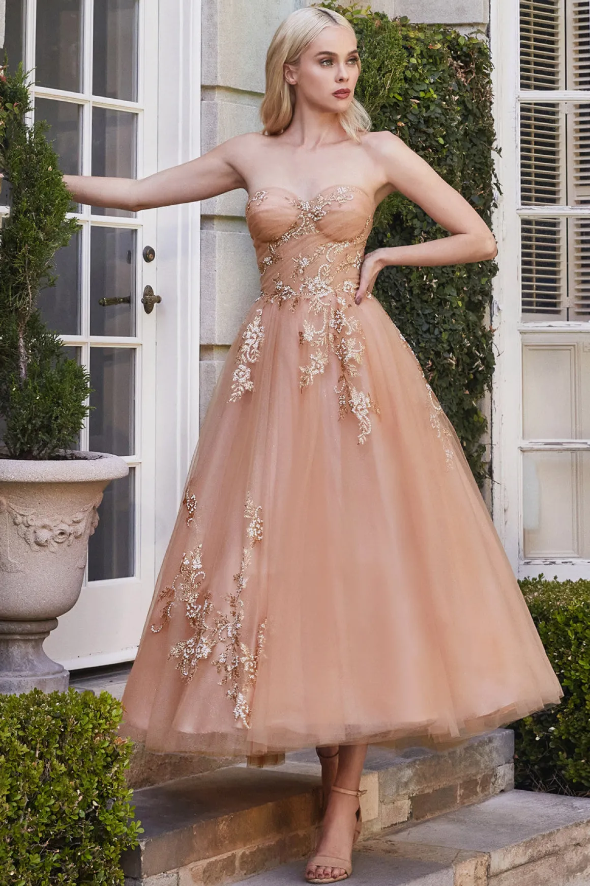 Andrea & Leo A1114 Stropløs corsageinspireret kjole med tea længde