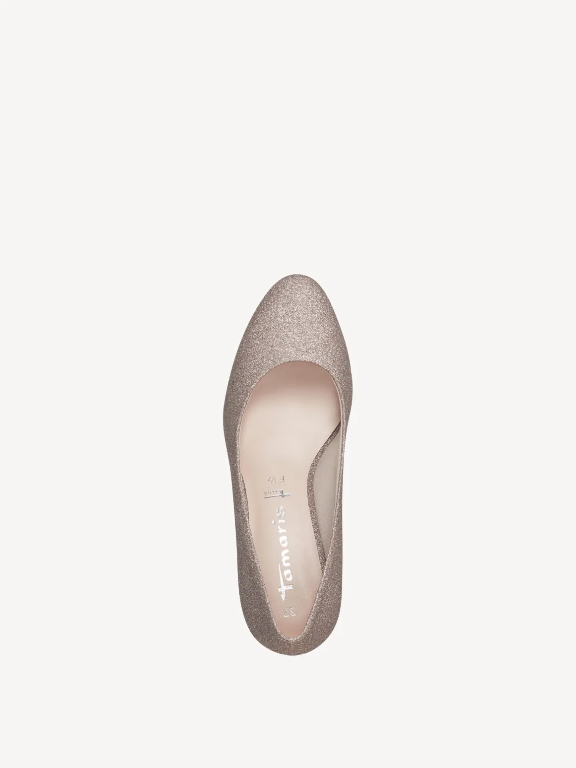 Smukkeste pumps i den fineste rosa farve med glimmer. Skoen har et stilrent look, som gør at den kan passe til flere forskellige outfits. Hælhøjde: 6 cm