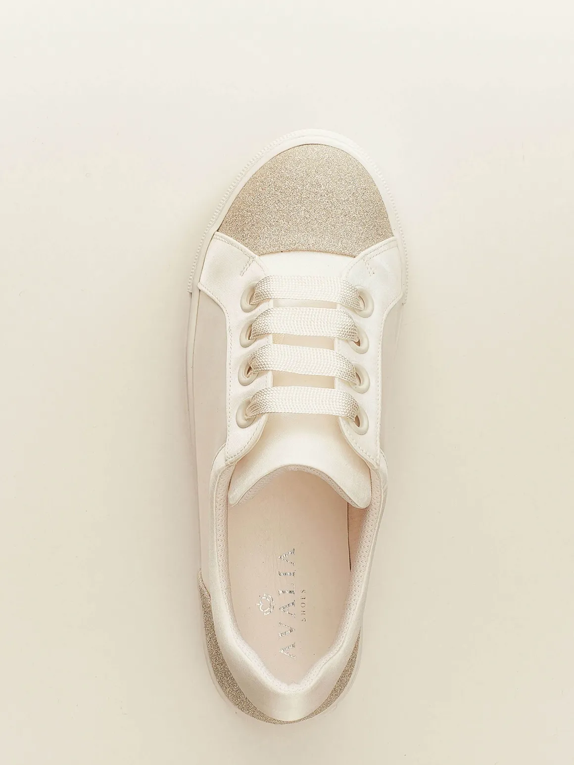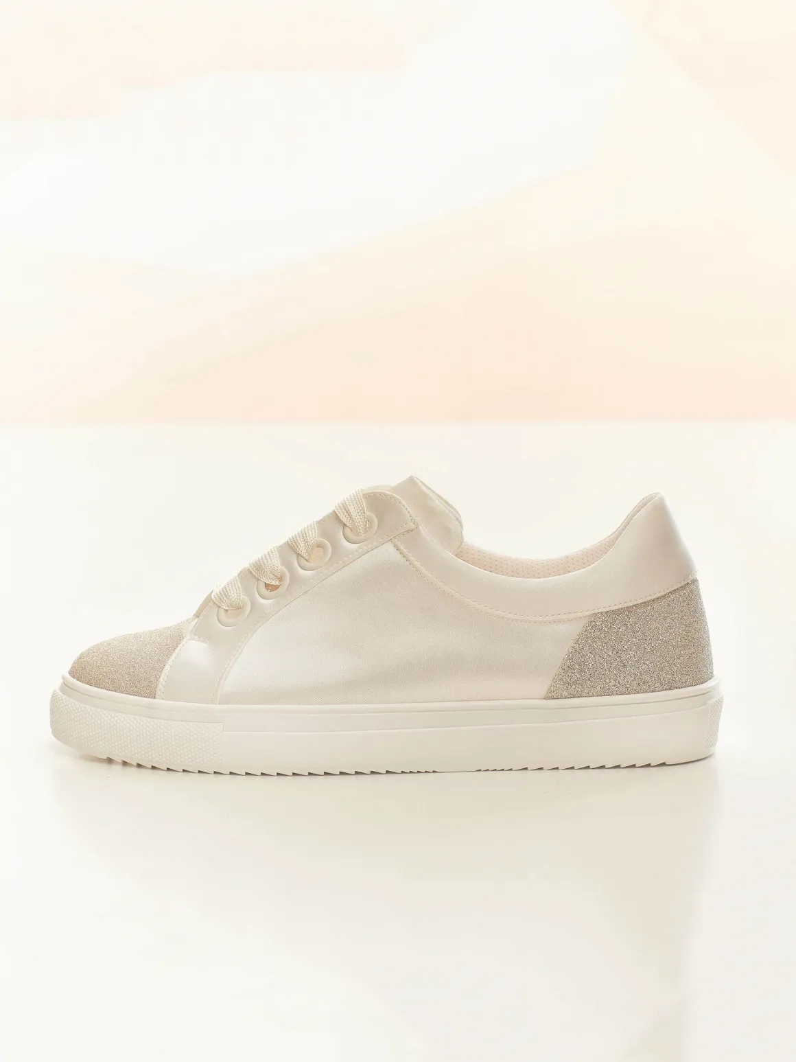 Robin er en super flot ivory brude / konfirmationssko med guld glitter Perfekte til par nummer 2 når fødderne trænger til at komme ud af de høje hæle
