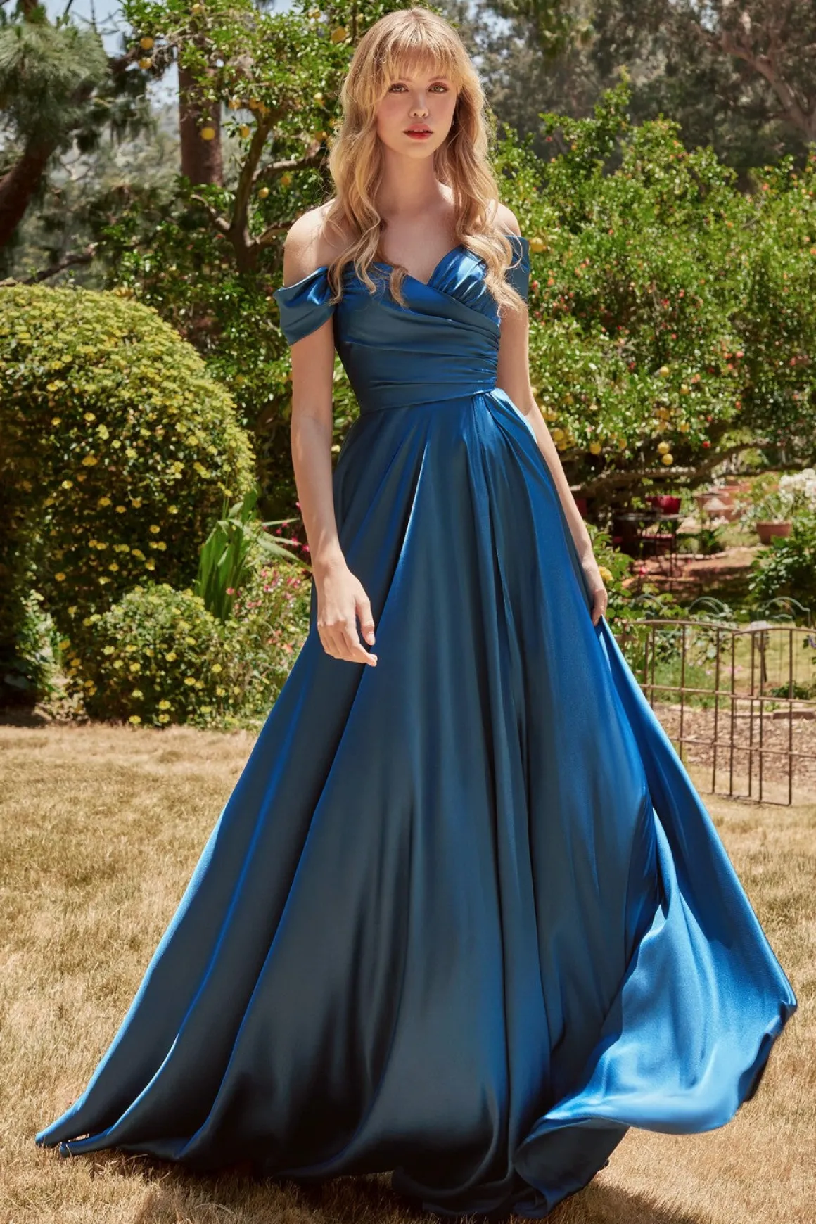 • A-line satinkjole med offshoulders