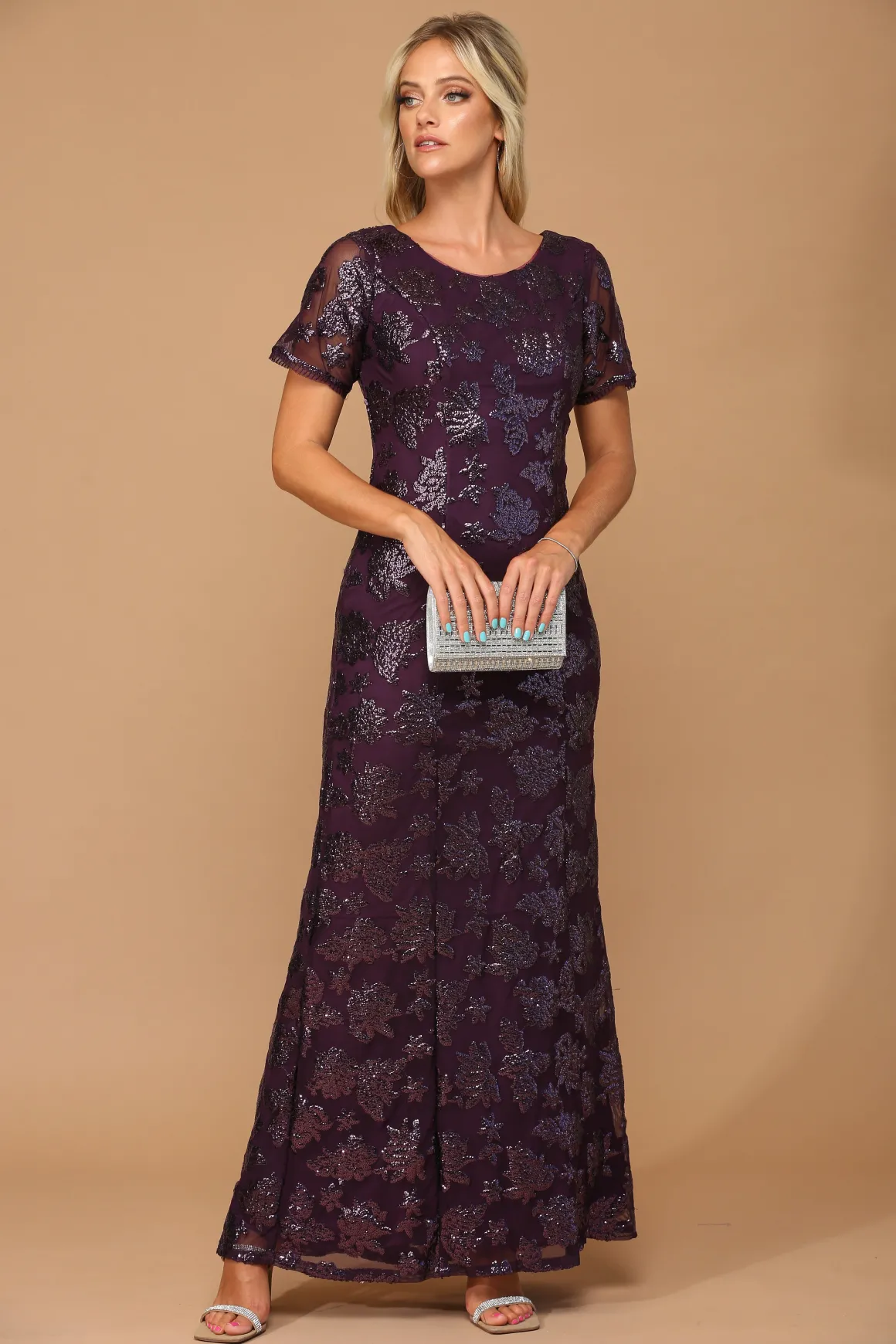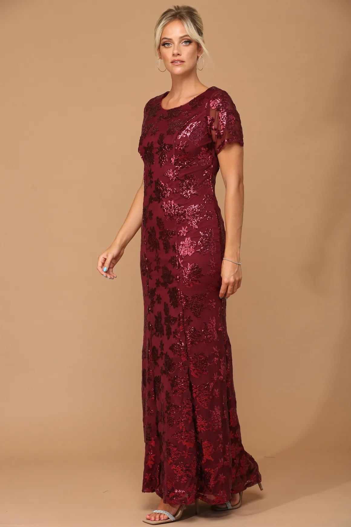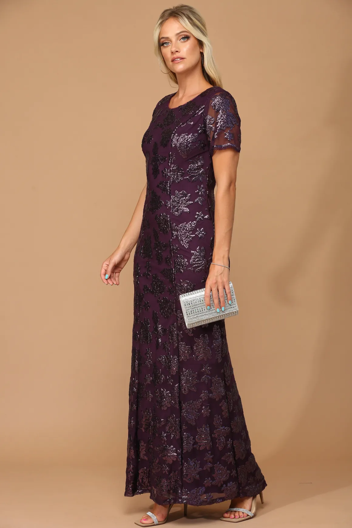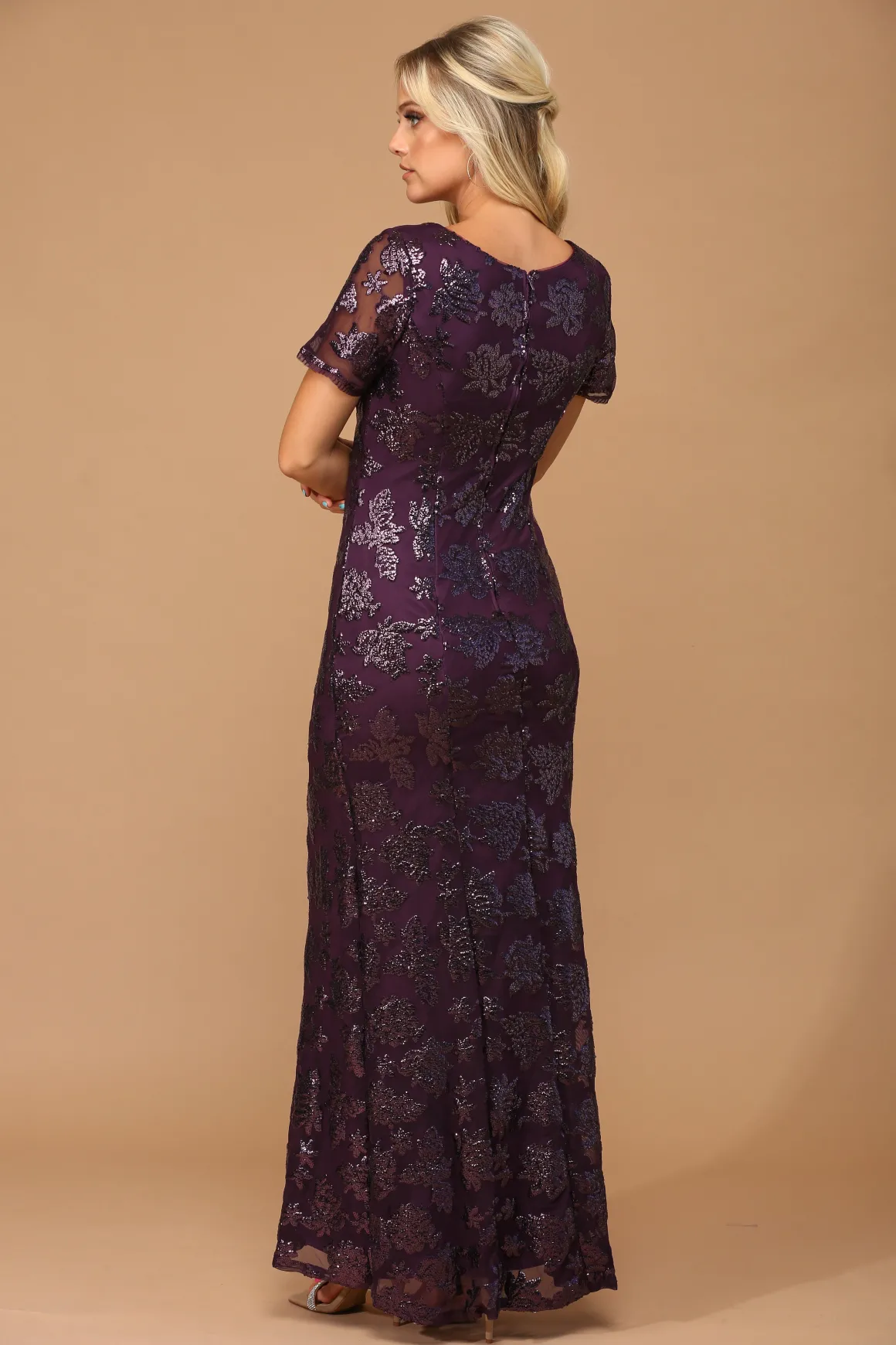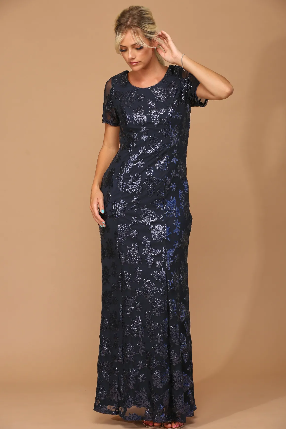 Kortærmet festkjole med pailletter 3456