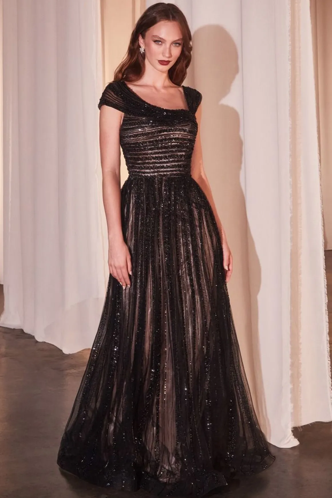 • Gallakjole med sten og asymmetrisk udskæring