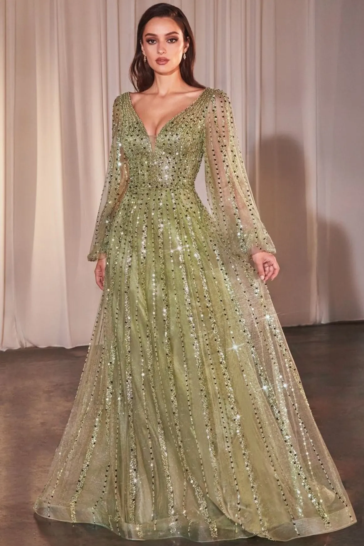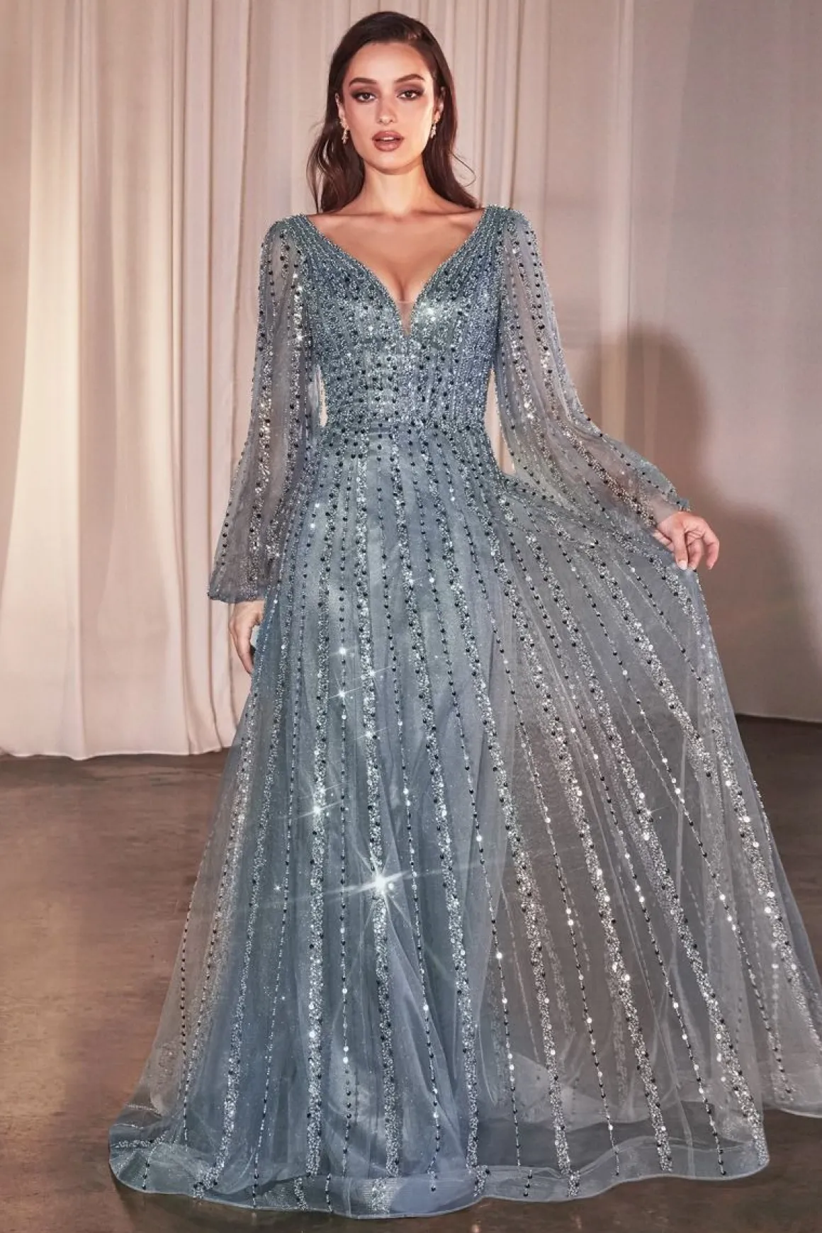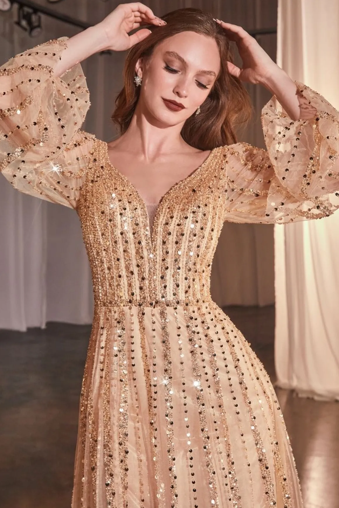 Flot gallakjole med lange ærmer og masser af pailetter.