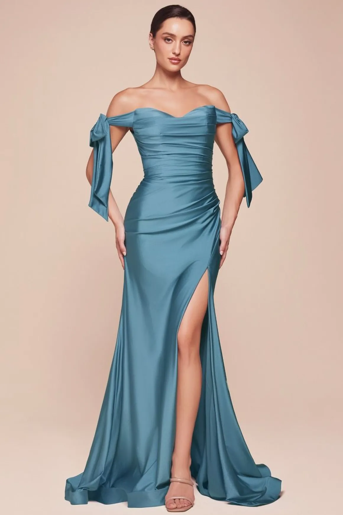 Elegant og super sød på en gang er denne fine Cinderella kjole med offshoulders og bindebånd på skuldrene.