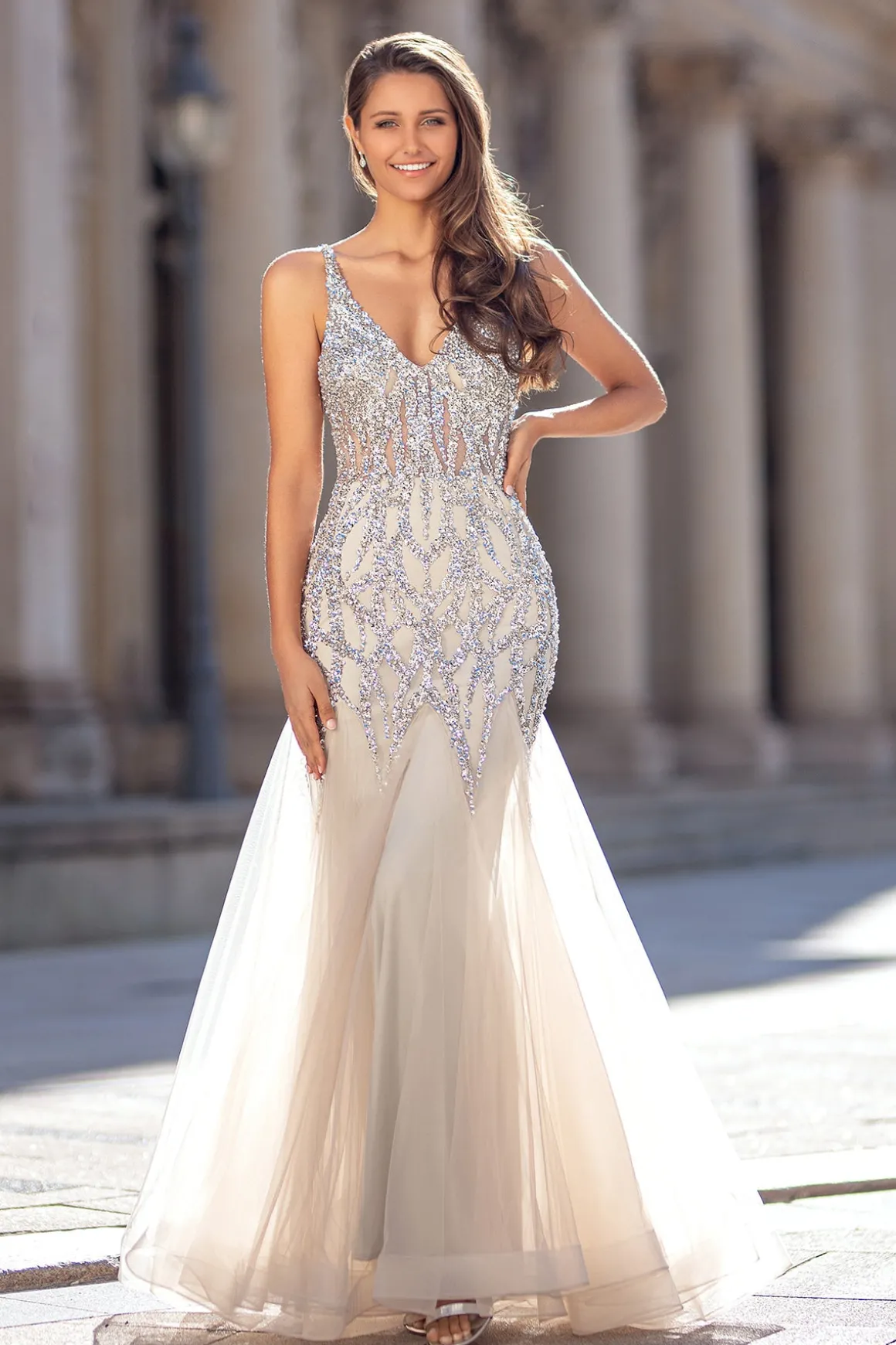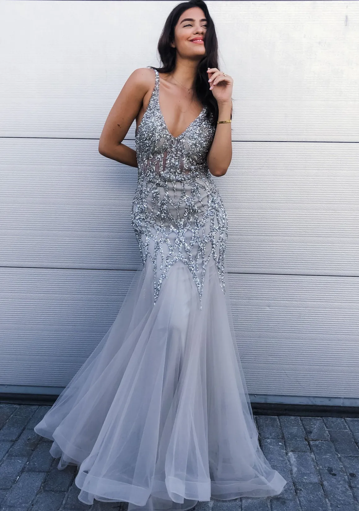 • Christian Koehlert 0571• Gallakjole i tyl med mermaid snit• Funklende sten øverst på kjolen• Kjolen er foret så den kan bruges uden bh• Farve : Lys grå• Størrelse 32-42 Lang flot gallakjole i havfrue / mermaid snit fra Christian KoehlertKjolen har v-udskæring og fremhæver din former så smukt Målene er bryst og talje