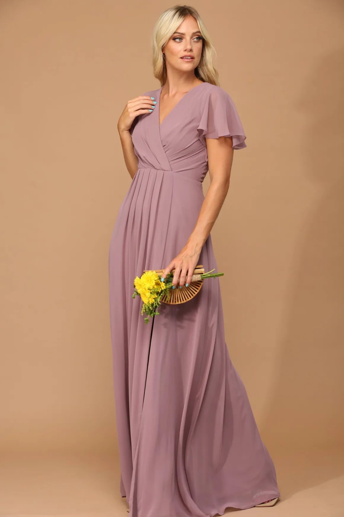 Mauvefarvet festkjole med kort ærme 3413